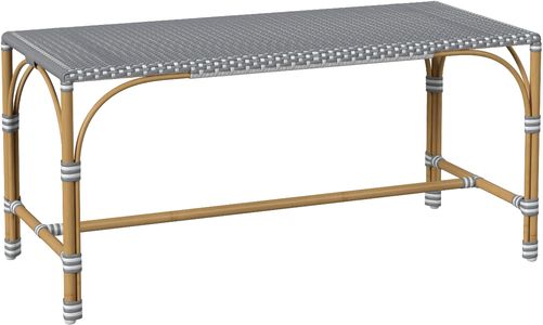 The handwoven synthetic rattan bench seat and natural-colored aluminum frame lend an airy coastal vibe perfect for your outdoor dining oasis or even add this to your indoor dining space for easy cleaning and durability.